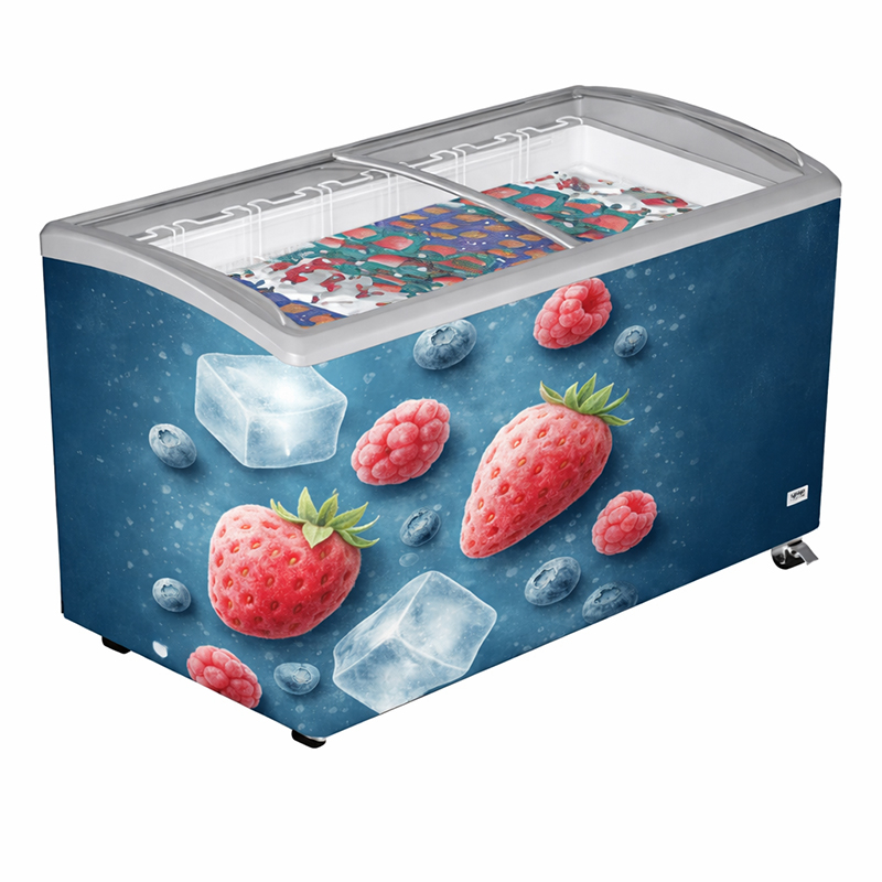 • System Drzwi Przesuwnych: Przesuwne drzwi ze szkła hartowanego ułatwiają szybki i łatwy dostęp do mrożonek i lodów.
