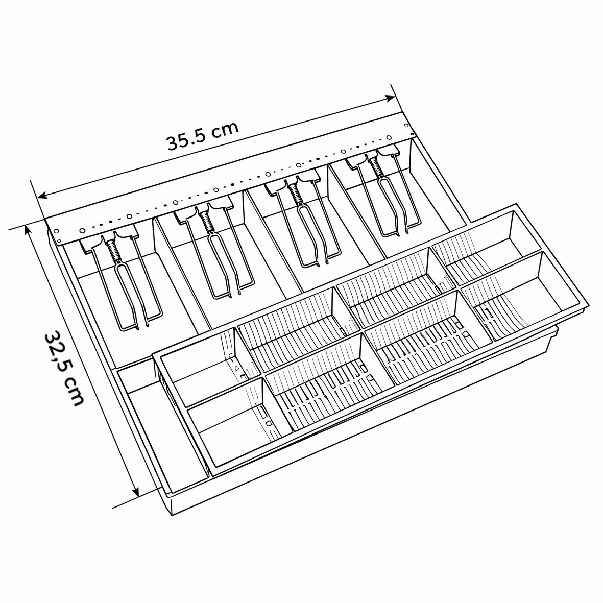 Przemyślany układ przegródek pozwala utrzymać gotówkę w idealnym porządku – banknoty i monety są zawsze pod ręką, co znacząco usprawnia obsługę Klientów i skraca czas transakcji. Organizer może być stosowany zarówno jako wkład do szuflady kasowej, jak i jako samodzielne rozwiązanie do przechowywania gotówki.